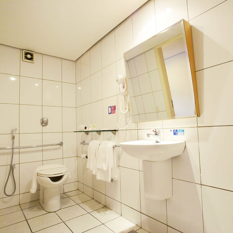 Os quartos PNE (Portadores de Necessidades Especiais) estão disponíveis somente na categoria LUXO SUPERIOR.